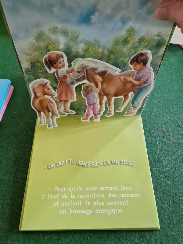 Exemplaire en très bon état, Pop-up rare Martine et les poneys. Ce livre pop-up joue sur deux tableaux très différents : la nostalgie esthétique et l’expérience ludique pour les enfants. Le travail de Marcel Marlier est sublimé par le relief. Les scènes en trois plans respectent la finesse des illustrations originales, ce qui en fait un objet de collection apprécié même par les adultes nostalgiques.